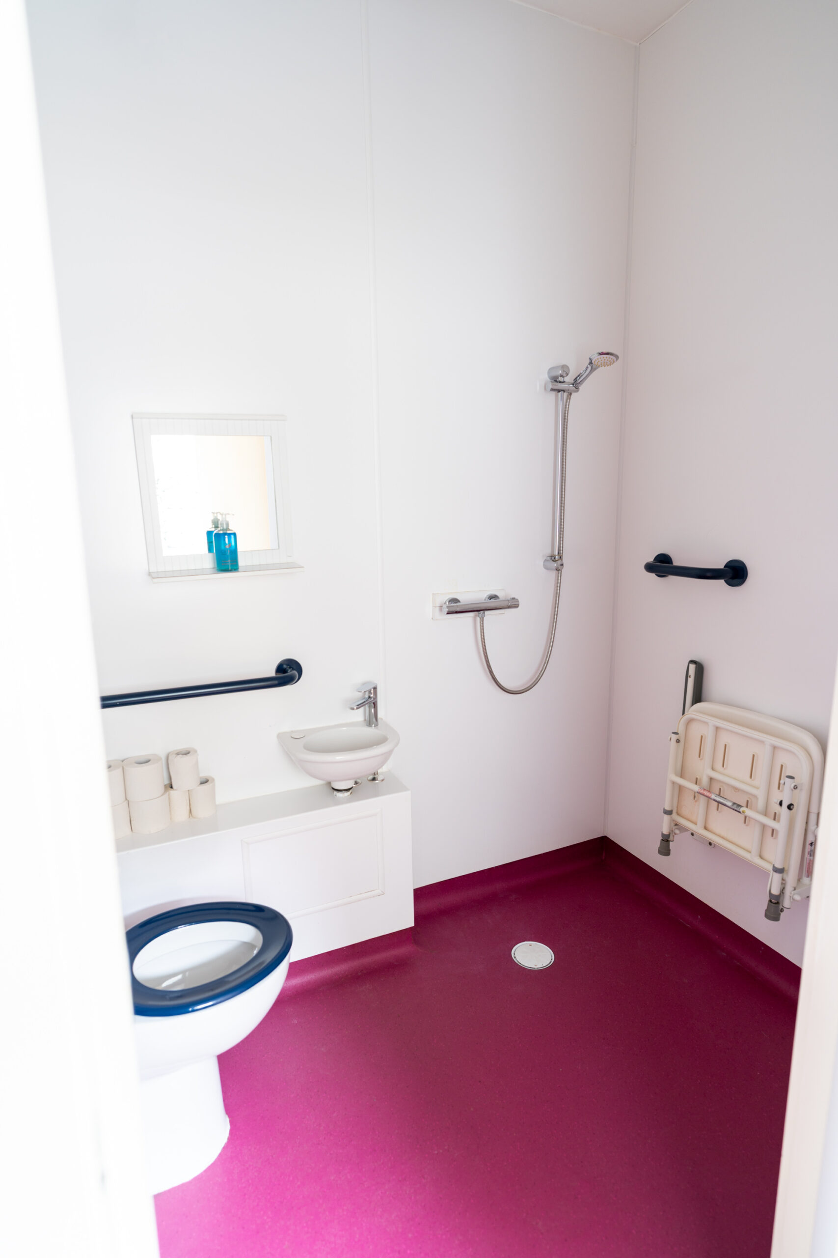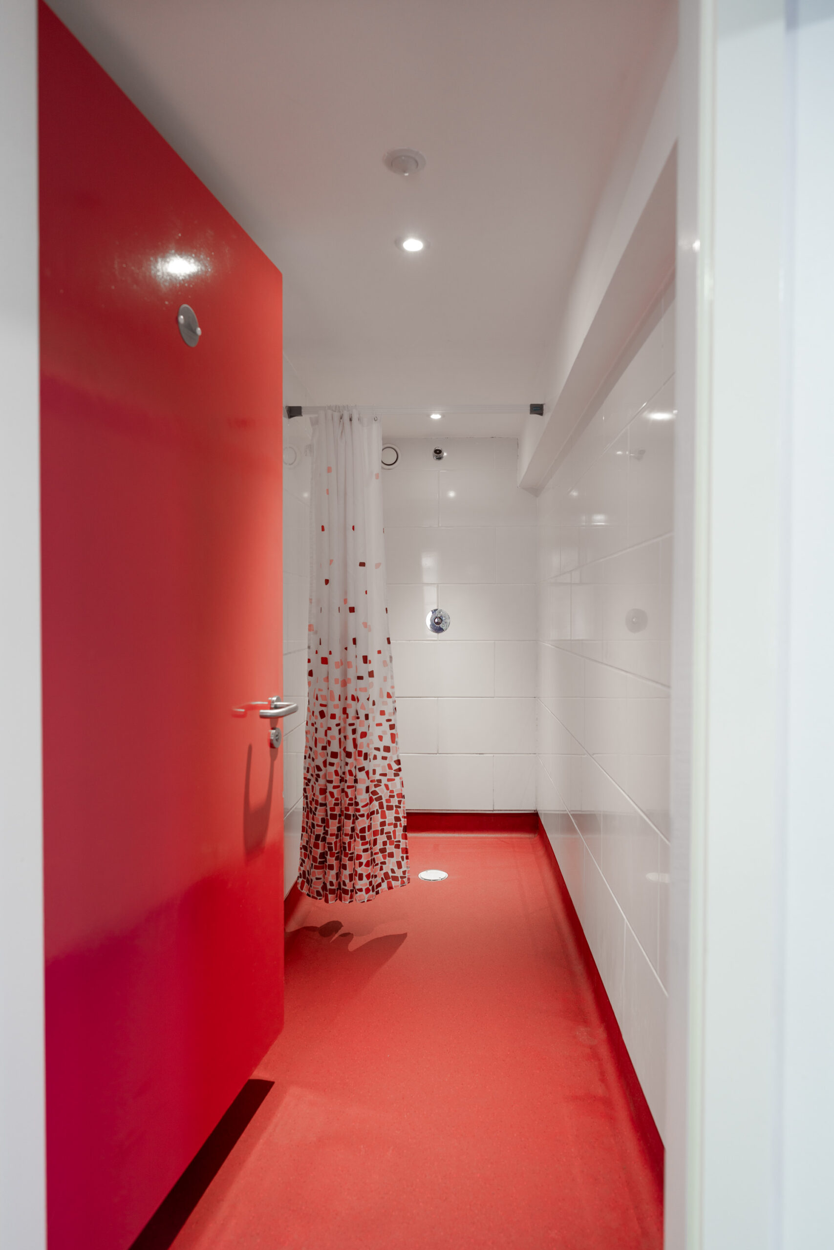 In the downstairs toilets, shelves have been added to leave toiletries; outside the showers, there are also shelves for guests to leave their belongings.