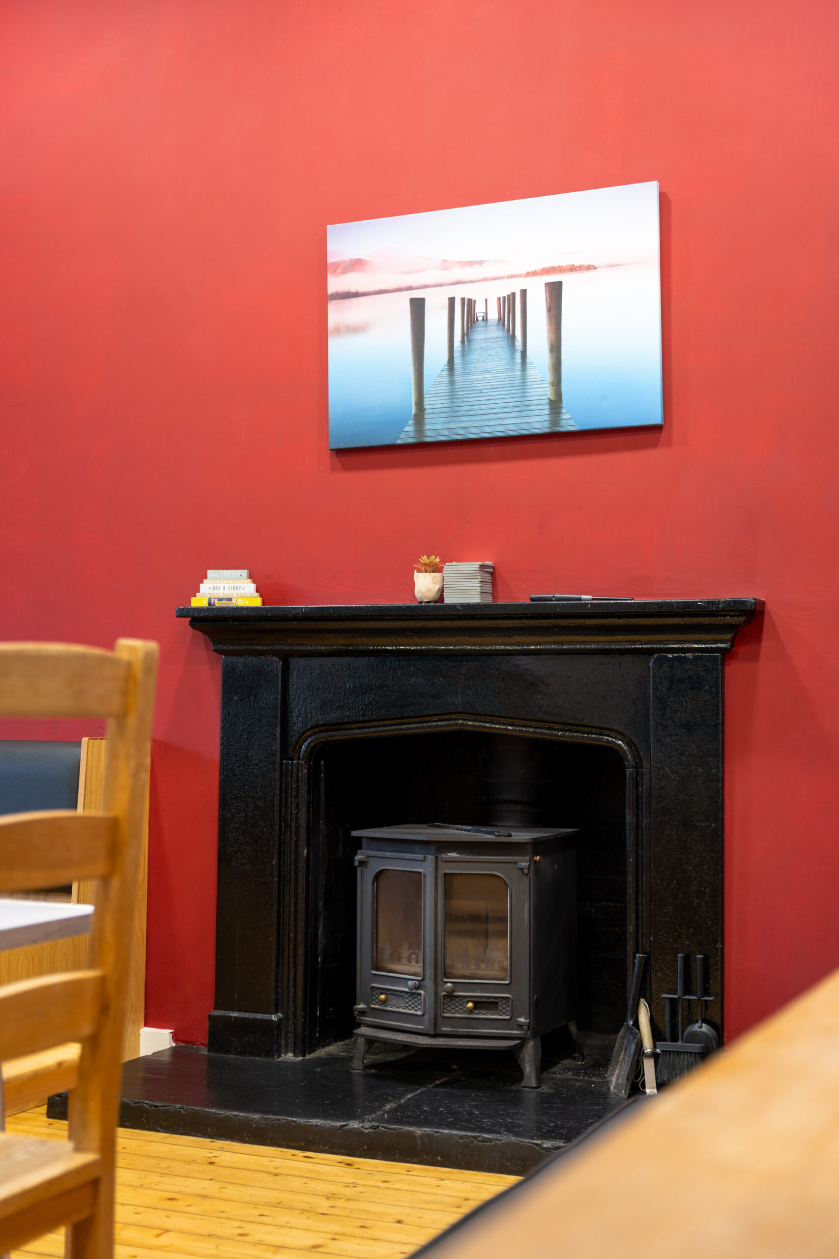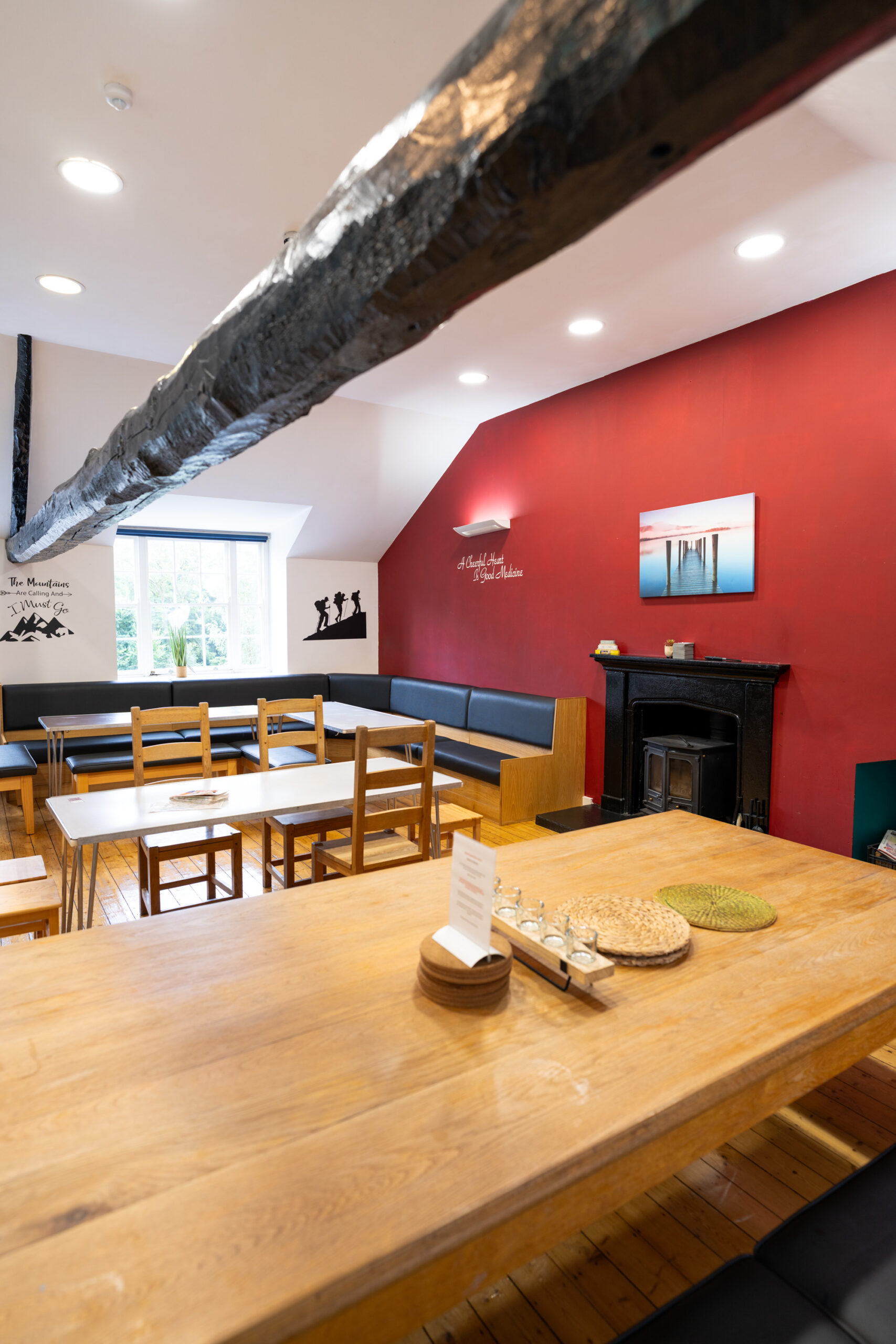 The communal room has newly fitted furniture, a table & chairs, and a TV. Along with a wood burner on the first floor. (One bag of logs is complimentary, with additional bags available to purchase from reception).