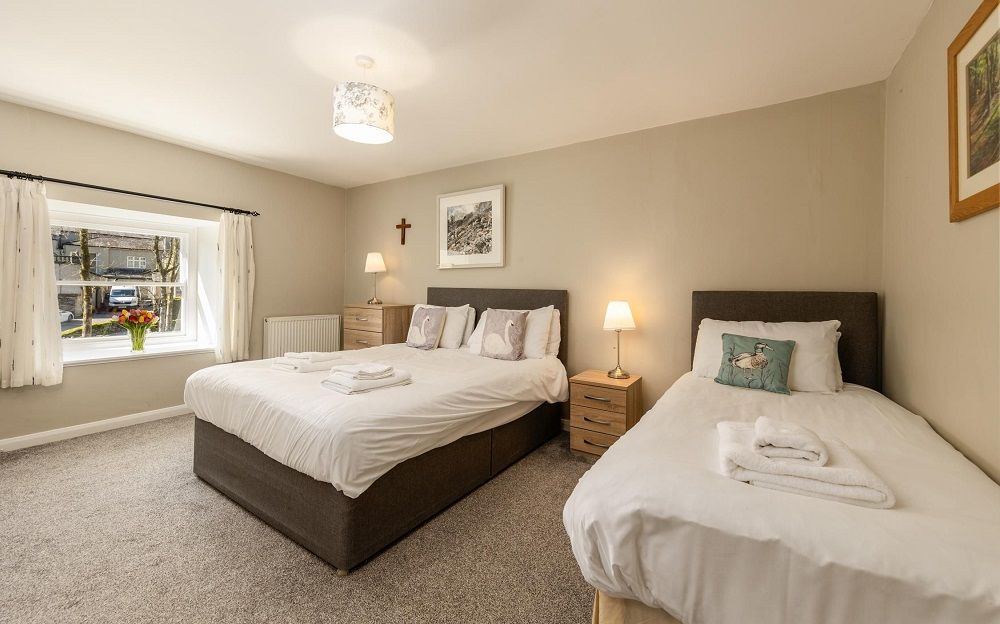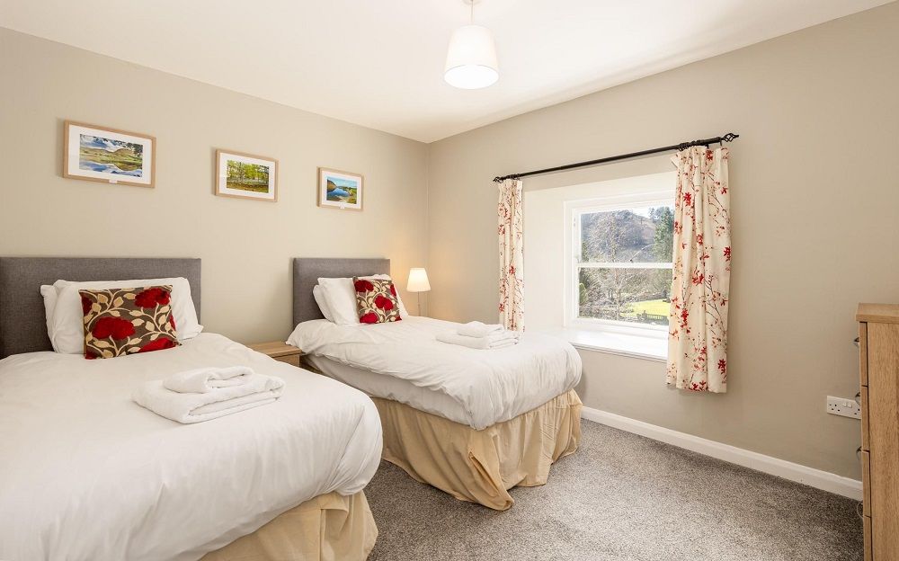 Our two story four-bedroom house with magnificent views of Rydal Beck and our Thomas Mawson gardens. Sleeps up to 8 people the bedrooms are made up of 2 with King size Beds and 2 with Twin beds. There is a fully fitted kitchen with dishwasher as well as washing machine and tumble dryer. The large lounge also has a log burner for those cosy evenings.